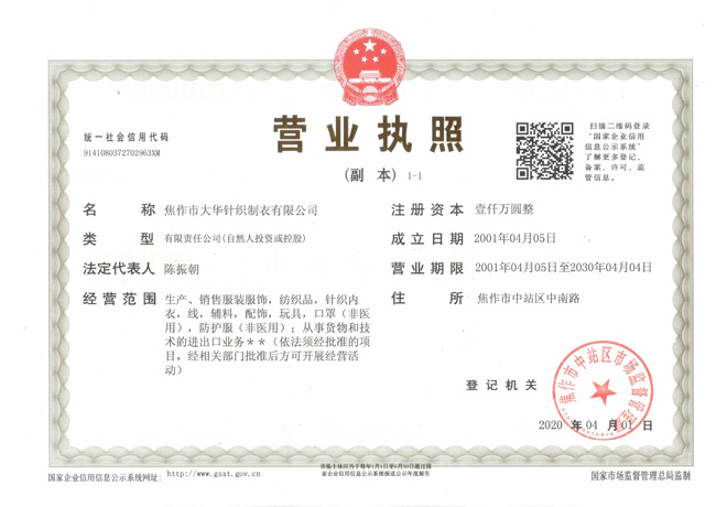 版權(quán)所有 焦作市大華針織制衣有限公司 聯(lián)系電話:0391-3275269 13938189192 郵箱:dahuazy@126.com